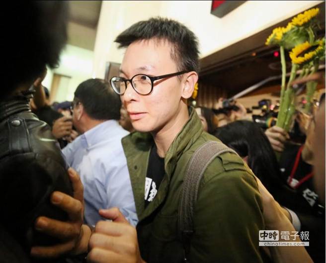10日傍晚林飞帆(中)与同学们一起步出议场、离开“立法院”。(图片来自台媒)
