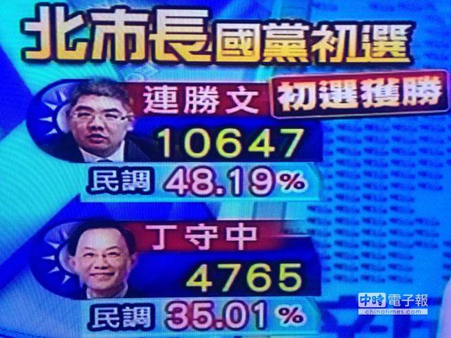 国民党北市长,连胜文胜出。(图片来源:台湾《中时电子报》)