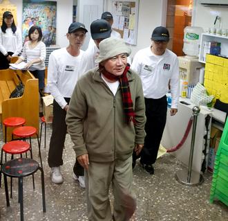 今日上午八点左右,林义雄缓慢步出静坐区去厕所,面色已显苍白。图片来源:台湾《联合报》
