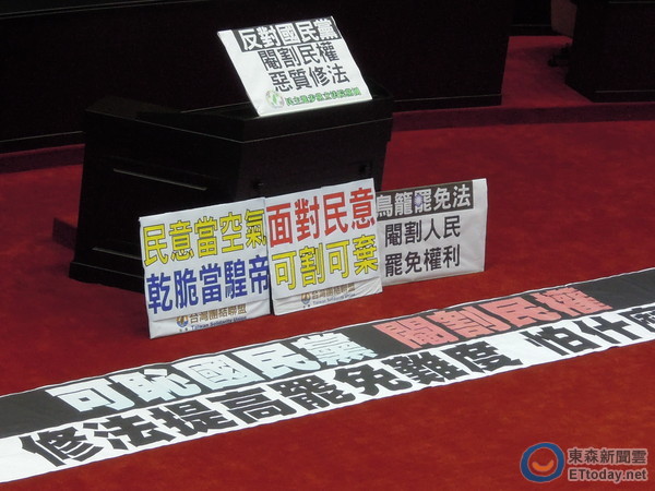 林鸿池说,572项议程变更就让“院会”一整天只能表决,国民党愿意面对,民进党反而退缩,显然民进党就只是要霸占主席台、让议事空转。对于“选罢法”修法,林鸿池说,修法不是要提高门坎,要求联署人提供“身份证”复印件及切结书,只是防弊、防伪,就算国民党愿意抽出“选罢法”,民进党又不想处理“两岸协议监督条例”,民进党不断挡案,完全只是为了反对而反对。