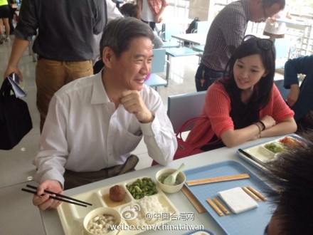 中国台湾网5月15日消息 据中国台湾网官方微博“@中国台湾网”报道,中共中央台办、国务院台办主任张志军15日在浙江大学与台湾学生一同排队打饭,并在食堂餐叙。