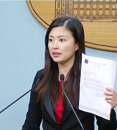 马英九办公室发言人李佳霏拿出AIT文件,证明马英九放弃绿卡在美已结案。(台媒图)