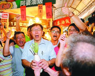 柯随后到三水市场拜票时,热情的摊商特地送上“菜头”,祝他有“好彩头”。许多民众看到柯文哲都特别凑上前去,向他比出大拇指喊“加油”。柯文哲见到年长的民众,也自然流露医师本色,问候身体健康状况。
