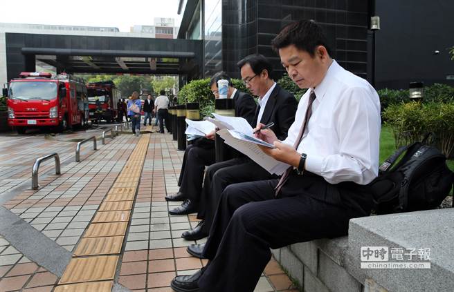 “立委”孔文吉等人忙走到户外。(图片来源:台湾中时电子报)