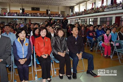 准国民党主席朱立伦与副主席黄敏惠、嘉义市议长萧淑丽等人并坐、互动。(图:台湾“中时电子报”)