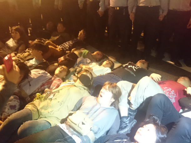 抗议青年直接躺在马英九办公室前。(台媒图)
