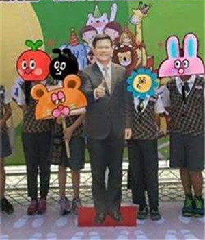 中国台湾网4月5日讯 据台湾《中时电子报》报道,台中市府2日举办“模范儿童、健康儿童表扬大会”,但除副市长潘文忠出席,会场只有市长林佳龙的人形立牌,地上还印有排排站的脚印图案,让很多家长抱怨,市长竟用人型立牌敷衍搪塞受奖者,抨击“龙系假”,小朋友的荣誉感缺少市长真人合影,大为失色。
