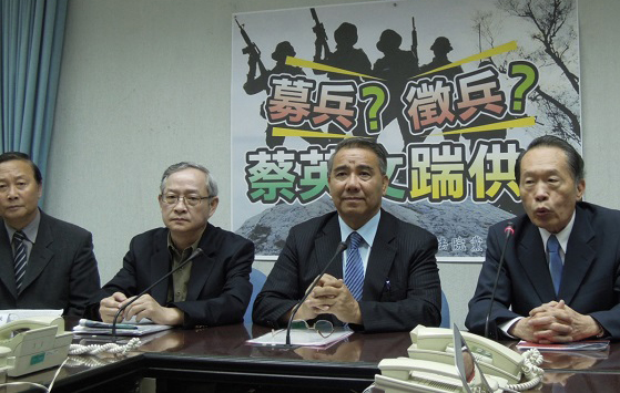 对于民进党主席、台湾2016“大选”提名人蔡英文表示,若当选后,将在募兵和征兵制度间找到一个最好的制度。国民党“立法院”党团今(22)天召开记者会,“蓝委”林郁方痛批,这种讲法是不负责任,这样的人如果未来当“三军统帅”,台军将不知为谁而战为何而战。(图片来源:台湾中广新闻网)