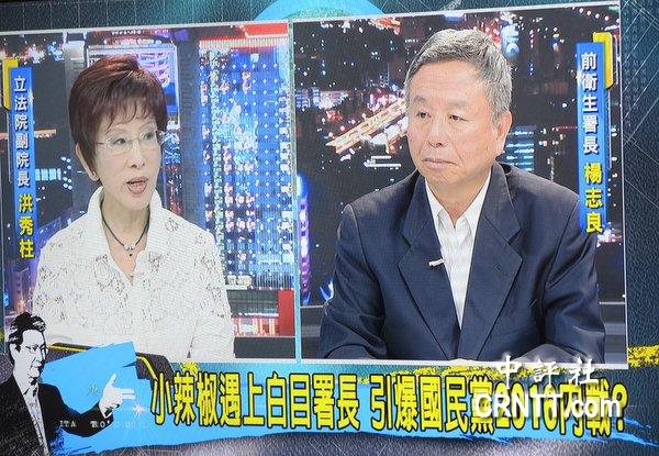 “立法副院长”洪秀柱与前“卫生署长”杨志良27日一起接受媒体人赵少康《少康战情室》节目专访,在一个小时的节目里完全没有战火,只有互相吹捧,洪秀柱在节目里还拿了三本杨志良的书说认同杨的理念,如果当选“总统”就会为请杨担任“行政院长”。