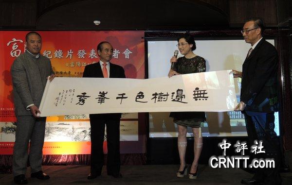 主办单位也赠送黄公望的诗句"无边树色千峰秀"的画字送给王金平。(中评社 黄筱筠摄)