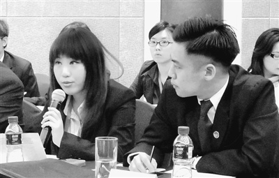 淡江大学学生林欣谕就两岸青年学生交流发表自己的看法。人民日报 记者孙立极摄
