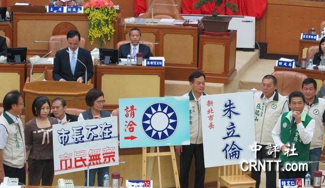 据香港中评社报道 新北市议会3日举行第2届第1次定期会市政总质询,由民进党展开共同质询和个人质询,民进党议员举牌向国民党主席、新北市长朱立伦抗议,认为朱立伦只处理党务,没时间处理市政,并有议员要求朱立伦好好思考,朱在讲台上被“罚站”了30分钟。