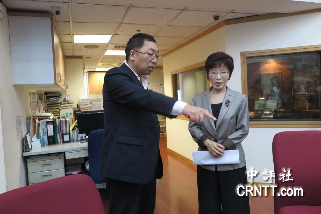 洪秀柱10日上午到飞碟电台接受唐湘龙专访。(中评社 彭媁琳摄)