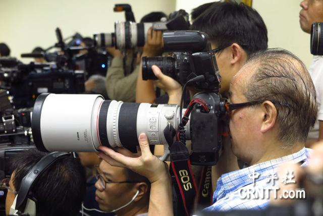 记者拿大炮拍到满头大汗。(中评社 彭媁琳摄)