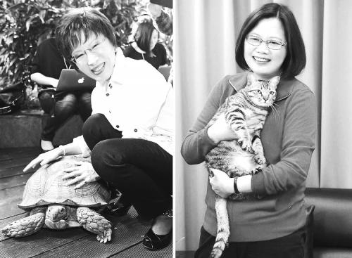 就连两人的宠物也被拿来PK。《联合报》16日报道称,蔡英文的宠物猫名叫“蔡想想”,蔡英文访美后曾向媒体透露,她最惦记的一件事就是回家喂蔡想想。据说,蔡想想最喜欢有客人来,“是社交型的猫”。洪秀柱则收养了一只重达30公斤的非洲象龟“龟龟”。在确定参选前,洪秀柱曾让龟龟公开亮相,并笑称,应该拿空心菜来喂龟龟,让龟龟“狠啃空心菜”。洪的幕僚称,洪秀柱希望发挥“龟兔赛跑”精神,当一只永不放弃的乌龟。《联合报》评论称,洪蔡对决,有如新龟兔赛跑,蔡英文是遥遥领先的聪明兔,但到终点还有一段路,奋力向前的洪秀柱追得辛苦,谁能拼到终点夺冠,还有许多变量。 【环球时报驻台北特约记者 陈雯萱 环球时报特约记者 李名山】
