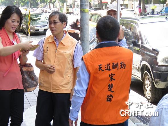 就现场观察,在场外举旗的亲民党支持者有50人左右,多数为刘文雄的人马。 (记者 倪鸿祥)