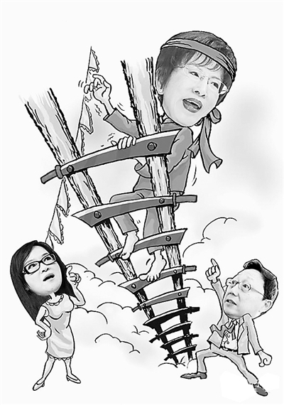面对岛内某些人的流言蜚语,洪秀柱表示会像道士赤脚爬刀梯一样,坚定意志克服困难。(徐振坤作)