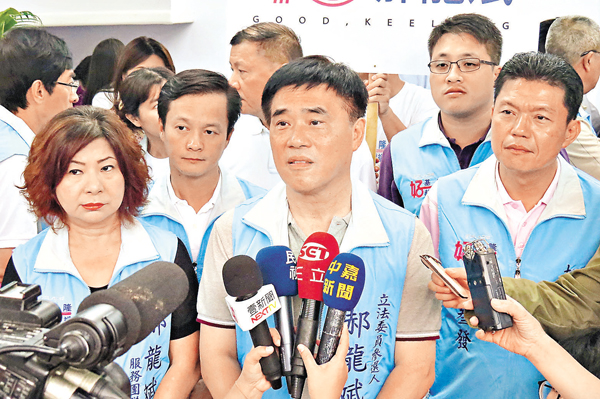 郝龙斌(中)建选举办公室,基隆市议会议长宋玮莉(左)等人到场支持。