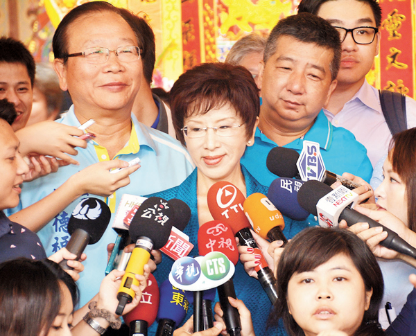 洪秀柱称,国民党亲民党有合作空间,不会放弃合作机会。图为洪参加保福宫中元法会接受采访。 资料图片