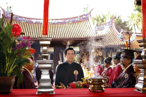 马英九出席台北孔庙释奠典礼,台北市长柯文哲则缺席。(资料照)