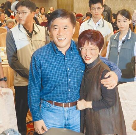 国民党2016参选人洪秀柱与基隆“立委”参选人郝龙斌昨晚参加前基隆市长林水木80大寿餐叙,两人同台、互动热络。(《中国时报》图 黄靖惠摄)