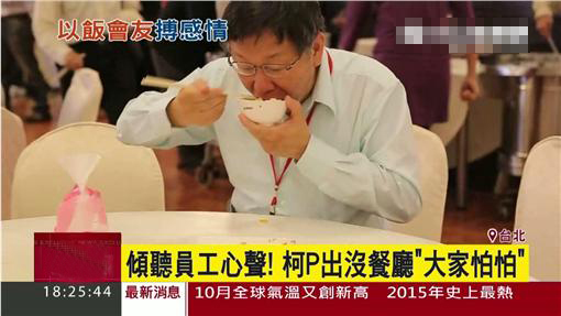 只是柯文哲刚一坐下,旁边座位上的人便赶紧挪开,看了老半天没人敢开口跟他聊天。柯文哲则只得猛扒饭,不花5分钟就吃完。