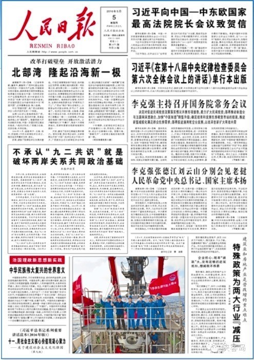 这不,5日出版的《人民日报》头版刊发评论员文章,通篇讲的都是“九二共识”。这种安排不寻常,台湾岛内更是关注。有人说,民进党大佬谢长廷剧透蔡英文就职演说不会提“九二共识”后,这是大陆官媒最新做出的回应。