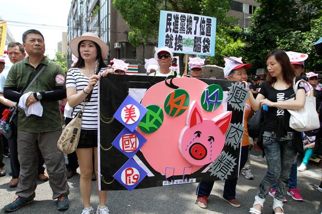 国民党“立委”随即拿着道具猪高喊“保护台湾猪、拒绝毒美猪”,民进党“立委”王定宇笑着喊,“那头是美猪啦,台湾猪是黑色的”。国民党“立委”陈宜民随即为道具猪画上眼泪,高喊“台湾猪在哭泣”。