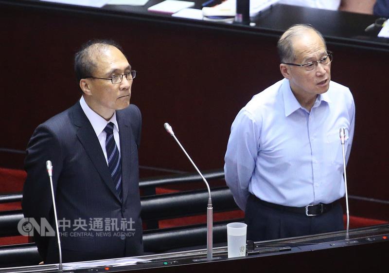 台当局“行政院长”林全(左)与李大维都面露难色(图片来源:“中央社”)