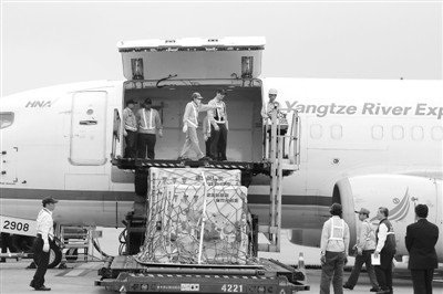 桃园机场也是台湾最大的货运空港。图为2011年台湾赠送大陆的长鬃山羊和梅花鹿在此启运。本报记者 陈晓星摄