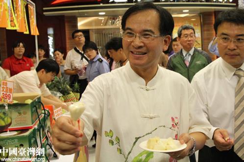 2010年9月,时任台南县长的苏焕智进京推销台湾优选鲜果麻豆文旦柚等九种水果。这是他当年度第二次进京推销水果。(中国台湾网资料图)