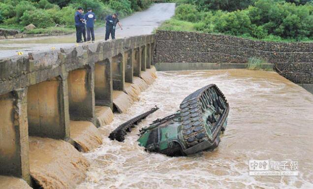 台陆军564旅一辆CM11战车发生坠溪意外,导致4人死亡。(图片来源:台湾《中时电子报》)