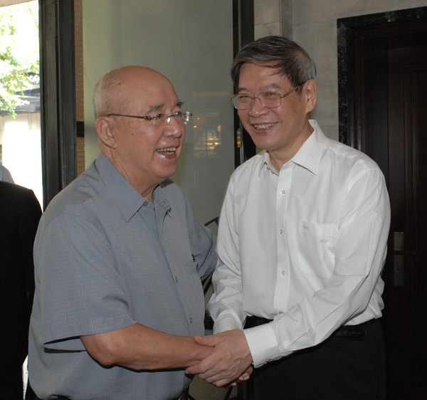 中国台湾网8月25日上海讯 25日,中共中央台办主任张志军在上海会见了中国国民党前主席吴伯雄,双方就两岸关系等问题进行了交谈。
