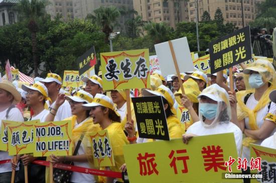 9月12日,由台湾观光旅游界自发组成的“百万观光产业自救会”,发动逾万人在台北冒雨游行,诉求“要生存、有工作,能温饱”。中新社记者 黄少华 摄