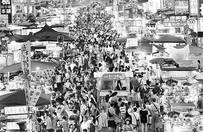 六合夜市曾经每晚6时到10时挤得满满都是人,其中八成是陆客。来源:中时电子报