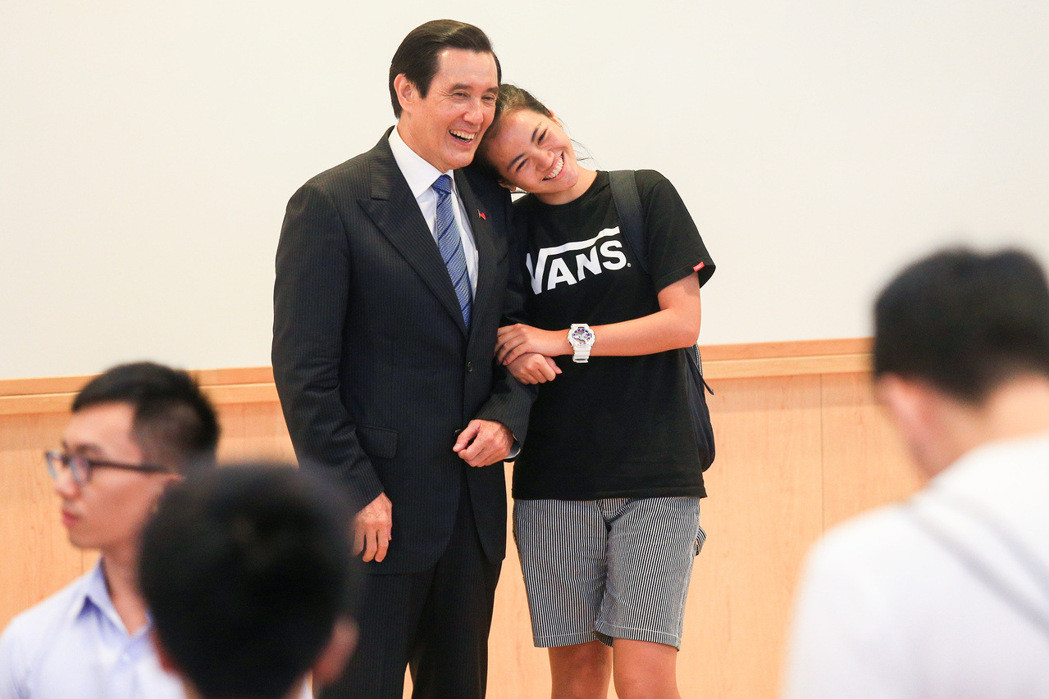 学生排队与“马教授”拥抱合影。(图片来源:台湾联合新闻网)