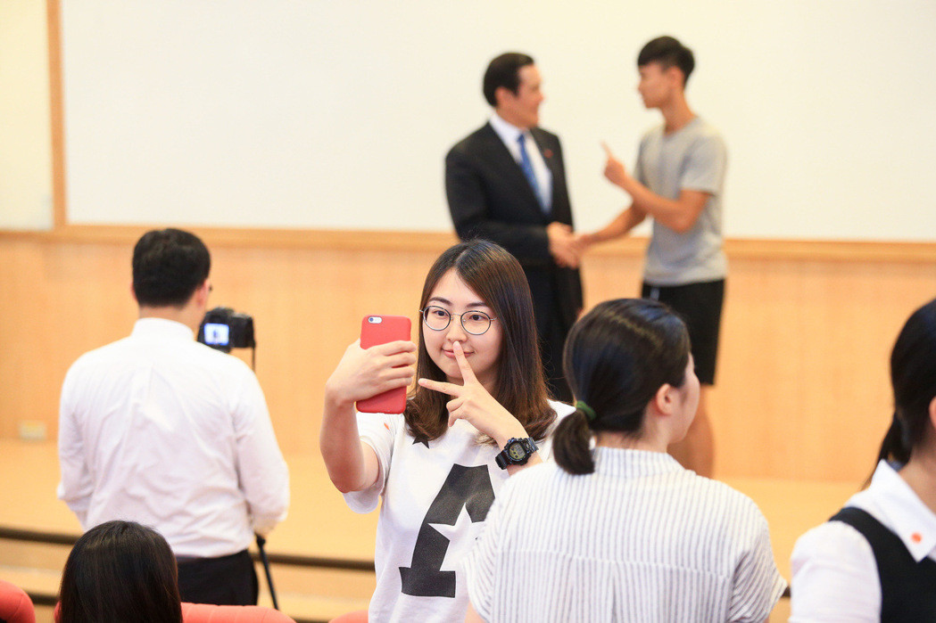 学生排队与“马教授”合影。(图片来源:台湾联合新闻网)