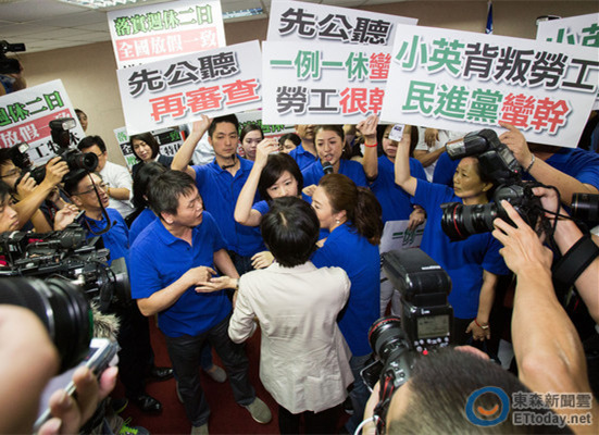 台湾“立法院社福与卫环委员会”5日审查“劳基法修法”,爆发激烈肢体冲突。最后该案仍在一阵混乱中完成初审,引来国民党团与时代力量党团强烈不满,严正抗议会议无效。