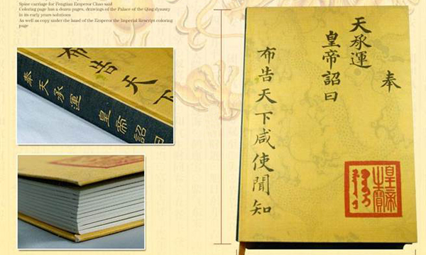据悉,该笔记本上面写有“奉天承运 皇帝诏曰”等字,封面与封底有浅浅一条金龙为底。(王思羽)