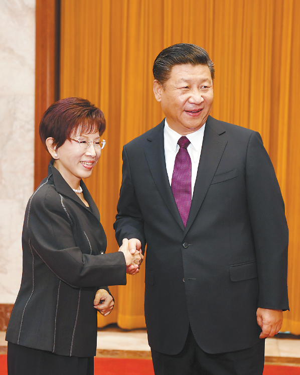 11月1日下午,中共中央总书记习近平在北京人民大会堂会见洪秀柱主席率领的中国国民党大陆访问团。