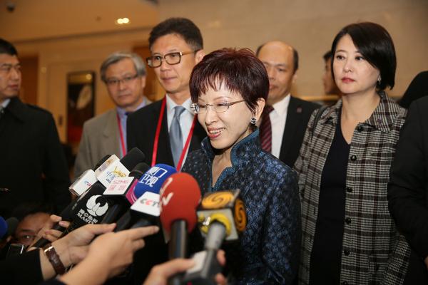 11月2日下午,北京,洪秀柱参加完“两岸和平发展论坛”分组讨论后接受媒体采访。 澎湃新闻见习记者 谢匡时 图11月2日下午,中国国民党主席洪秀柱来到在北京举行的两岸和平发展论坛会场。