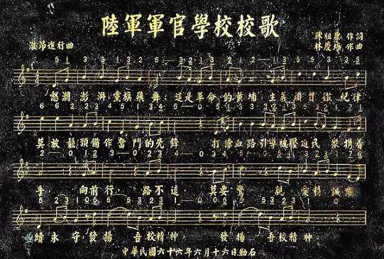 陆官校歌作词者陈祖康是福建漳平人,1901年生,1919年秋赴法国勤工俭学,1923年参加中国共产党,1925年回国到黄埔军校任少校政治教官,1926年秋撰写校歌歌词,后来返回家乡福建从事“革命活动”,来年因投靠国民党而被共产党开除党籍。陈祖康后来长期在传奇情报头子戴笠手下工作,授少将军阶,1979年2月在台湾病故,享年79岁。