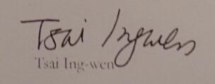 蔡英文在亲笔函最后署名“Tsai Ing-wen”,“Tsai”与“Ing-wen”两部分中间没逗号,若按西方人姓名拼写习惯,可理解为此人姓“英文”,名“蔡”。(截图取自台媒)