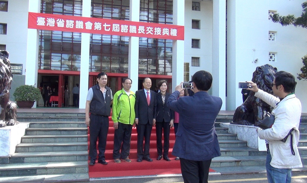 台湾省咨议会咨议长郑永金(左三)今天接任,但台“行政院”未同时派任其他咨议员,让台湾省咨议会的未来定位值得观察。(图片来源:台湾《联合报》)