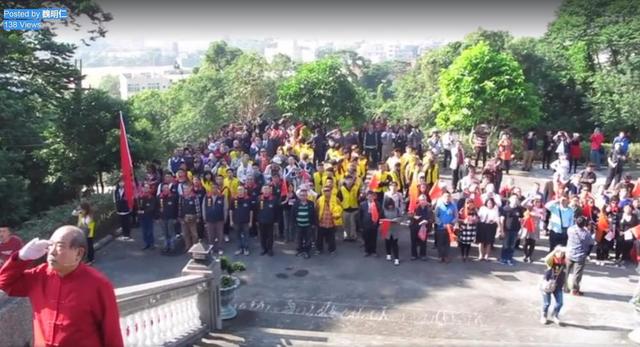 2017年元旦,台湾南投民众魏明仁带领一群爱国人士,在彰化二水乡参加中华人民共和国国旗、中国共产党党旗升旗典礼。