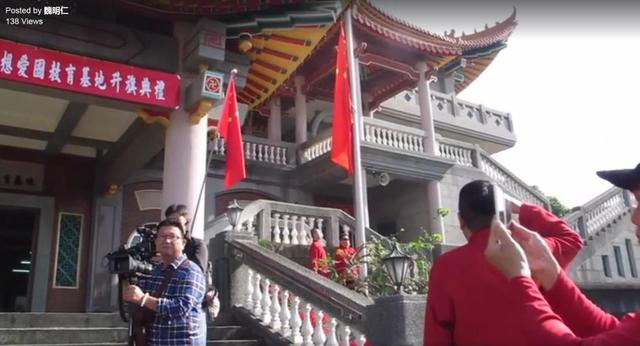 从视频中可见,不少台湾民众参加了升旗,在台下挥舞旗帜,唱《义勇军进行曲》。