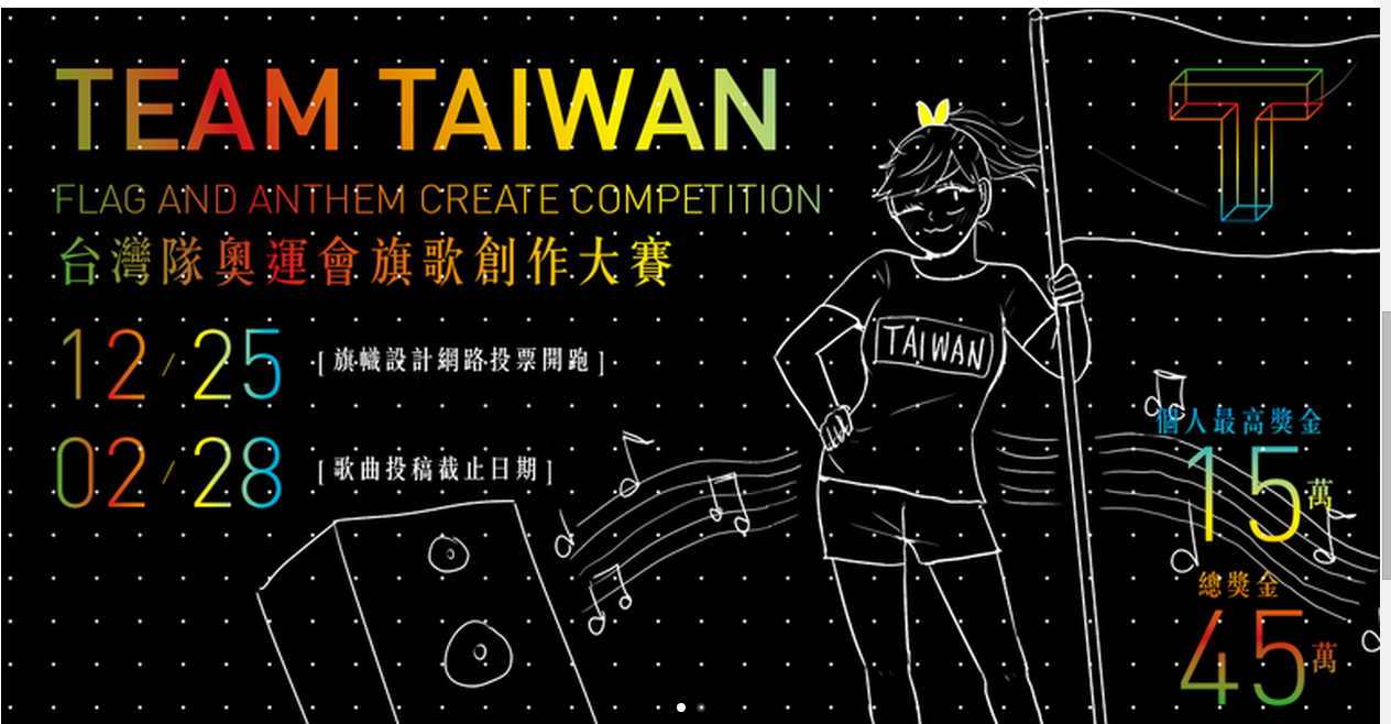 据了解,此项活动由Team TaiWan、民报文化艺术基金会,民视新闻台以及“时代力量立委”林昶佐的“立法院”办公室举办,林昶佐还亲自担任评委,其他评委包括资深奥运选手纪政,台湾大学音乐系主任曾道雄,台北市立教育大学视觉艺术系所退休教授苏振民等。