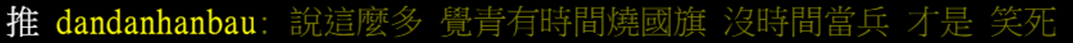 对于这篇文章的言之凿凿,台湾网友更多是在嘲讽:“说这么多,觉青(台湾网友对太阳花一代觉醒青年的戏称)有时间烧国旗,没时间参军。”“先被斩首或者丢几颗飞弹,就有人喊‘20FF’(直接投降)了,相信吗?”“傻了才一味相信别人一定要为你做什么。”“根本不用打,只要封锁台湾海运,三个月台湾自己垮了啊。”