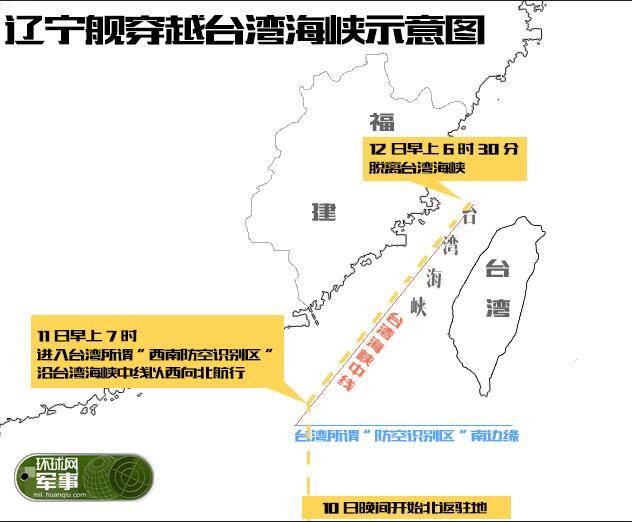 这一消息也在一定程度上证实了当天早晨台湾“国防部”关于辽宁舰通过台湾海峡的消息。台“国防部”新闻稿称,解放军辽宁舰航母编队,持续沿大陆沿海向北航行,“已于今天(12日)早6时30分脱离台湾海峡北返归建”。自10日晚台“国防部”开始发布辽宁舰编队动向算起,到辽宁舰离开台湾海峡差不多有两天时间,这对于台湾来说无疑是漫长的两天。11日早,台“国防部”新闻稿称,辽宁舰航母编队11日7时进入台湾的“西南防空识别区”,沿台湾海峡中线以西向北航行。如果从当天7时算起,到12日上午6时30分,辽宁舰在台湾海峡附近游弋的时间接近24小时。