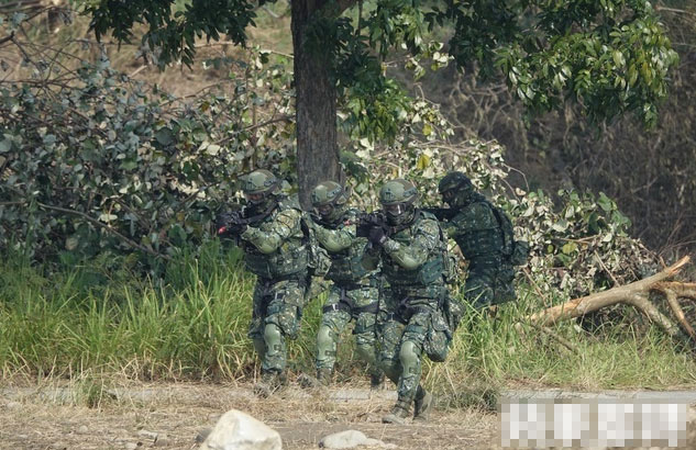 之后机步234旅接到命令,立即派遣战备应变部队实施作战,M60A3战车在“歼敌”过程中直接从轿车上压过,效果逼真。随后出动的云豹8轮甲车也直接跨越排水沟,展现越障能力。在地面部队优势火力掩护下,台湾特战部队突击着陆,“肃清敌人,夺回重点目标”。